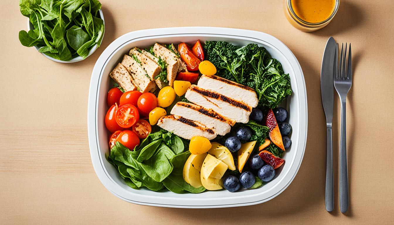 For portion control lunch, think about the right serving sizes for each food group. Use the USDA’s MyPlate guidelines for balanced meals. This helps you avoid overeating and stay healthy all week.