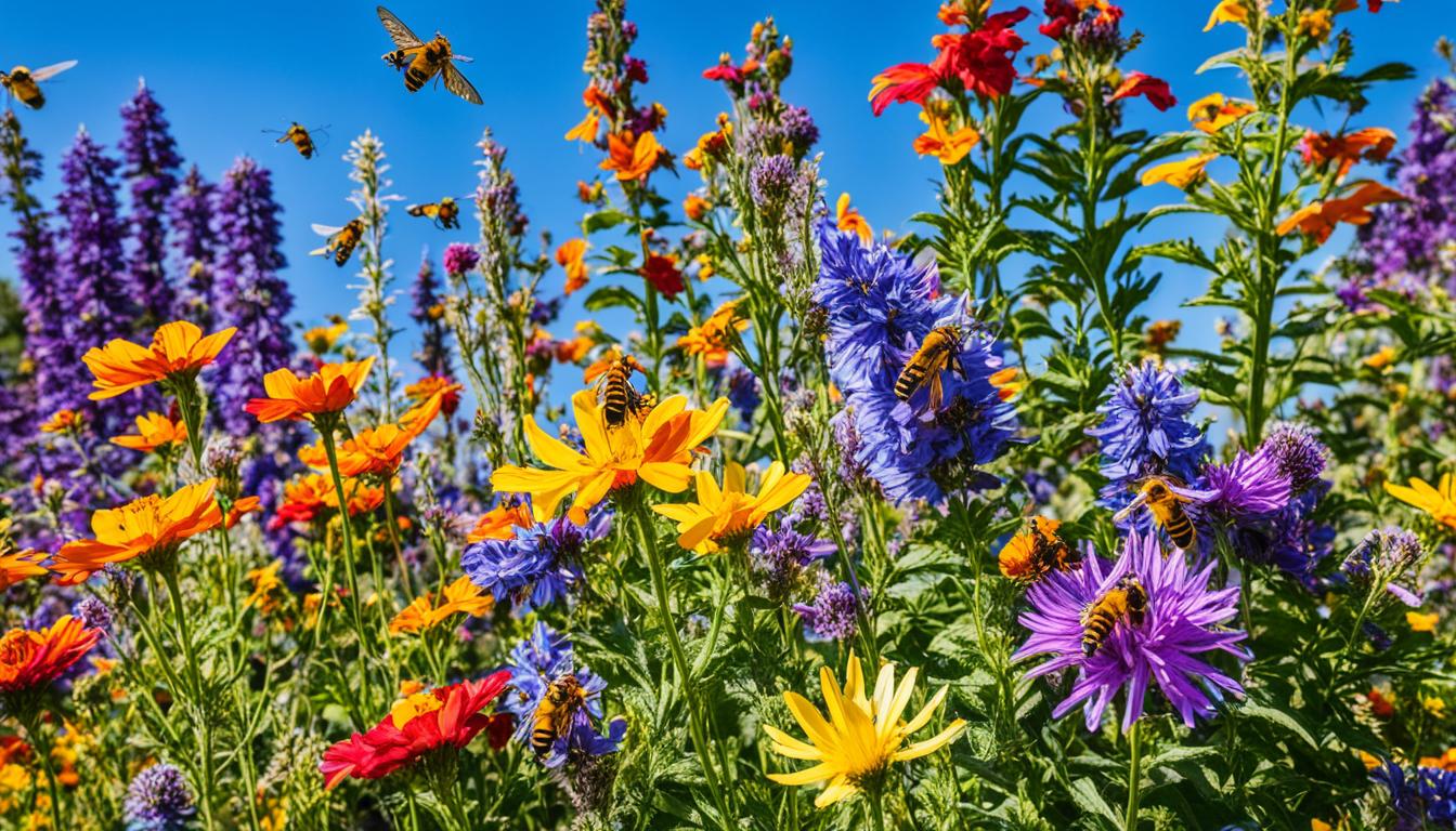 Native plants are crucial for a pollinator-friendly garden. They’ve grown with local pollinators, offering the right nectar and pollen. Adding a mix of native flowers, trees, and shrubs makes your garden a rich pollinator habitat. This supports bees, butterflies, hummingbirds, and moths.
